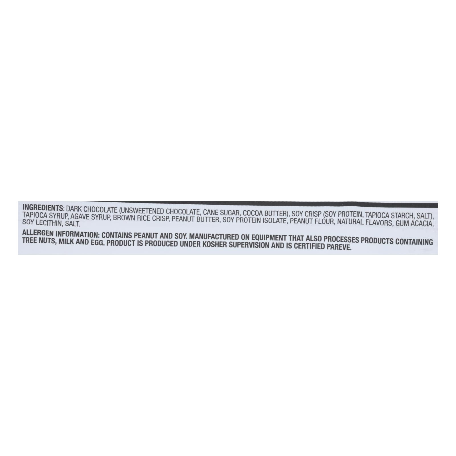 ingredients : dark chocolate;unsweetened chocolate;cane sugar;cocoa butter;soy crisp;soy protein;tapioca starch;salt;tapioca syrup;agave syrup;brown rice crisp;peanut butter;soy protein isolate;peanut flour;natural flavors;gum acacia;soy lecithin