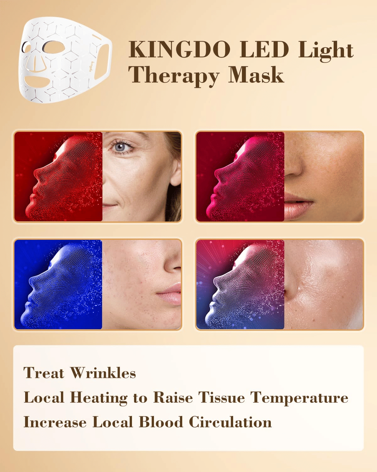 Automatic timing-The KINGDO LED mask is equipped with an automatic timing function and turns off after 10 minutes. Having your own red light mask can save a lot of money and time compared to the complex and expensive treatments in beauty salons.