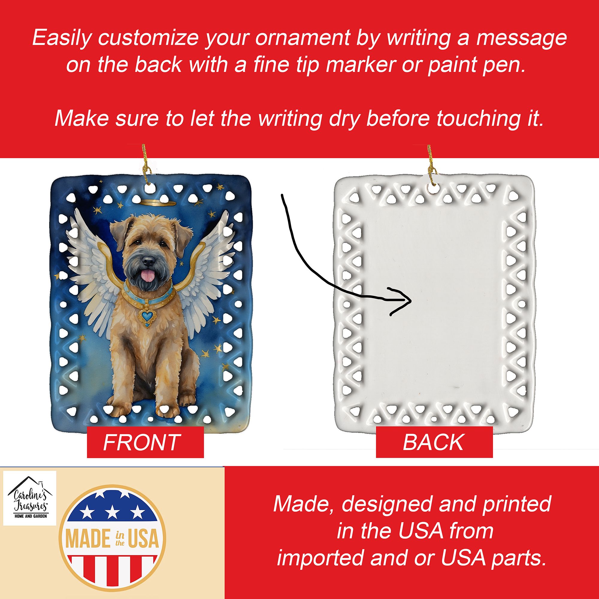 Porcelain Ornament featuring breed specific Bouvier des Flandres artwork. Celebrate Christmas with this Christmas Ornament. Add a unique, personal touch to your holiday decor with our Rectangular Lattice Porcelain Ornament. Perfect for creating cherished memories, this high-quality ornament shines under festive lights, reflecting warmth and joy throughout your Christmas tree. Crafted with a glossy finish, it showcases vibrant, full-color artwork contributed by our talented artists, ensuring your tree is adorned with a burst of color and holiday spirit. What sets this Porcelain Ornament apart is its customizable white back. Use a paint pen or permanent marker to write a heartfelt message, commemorate a special year, or mark an unforgettable date, turning this ornament into a keepsake that will be treasured for years to come. For best results, allow any personalization to dry thoroughly before handling. Each ornament comes complete with a delicate gold cord, making it easy to hang and display. Proudly made in the USA, this ornament measures 3.375 x 2.625 inches and is a thoughtful gift for pet sitters, teachers, family members, or anyone who would appreciate a little extra holiday magic. Bring style, charm, and a touch of personal meaning to your Christmas tree with this beautifully designed ornament..