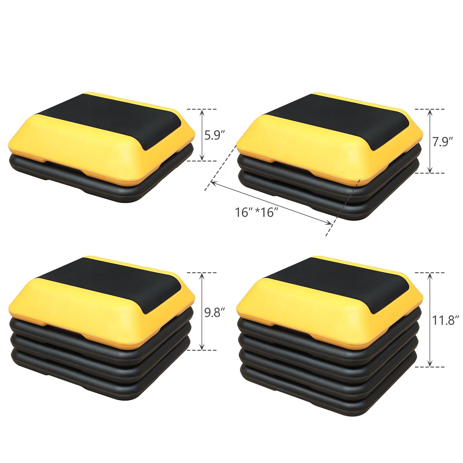 Height-Adjustable Step Aerobics Platform Fitness Equipment Stepper Trainer Exercise Step Platform with 4 Riser Yellow