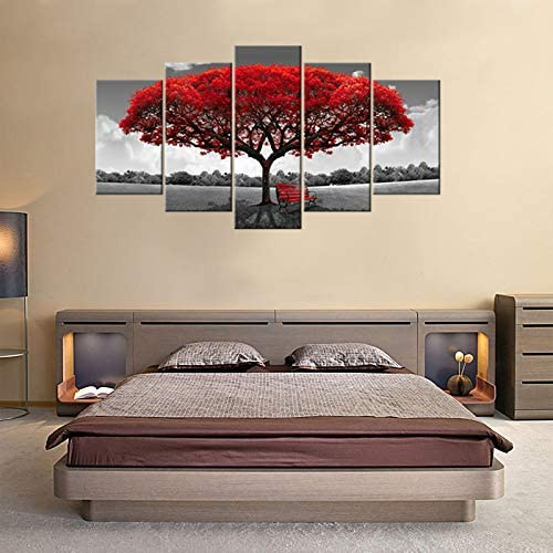 Home > Canvas Wall Art Red Tree Picture Prints on Canvas Landscape Painting Modern Giclee Artwork Stretched and Framed Ready to Hang Canvas Art for Home Deco