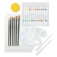 Includes a variety of brushes, a palette for mixing, and 3 canvas boards.