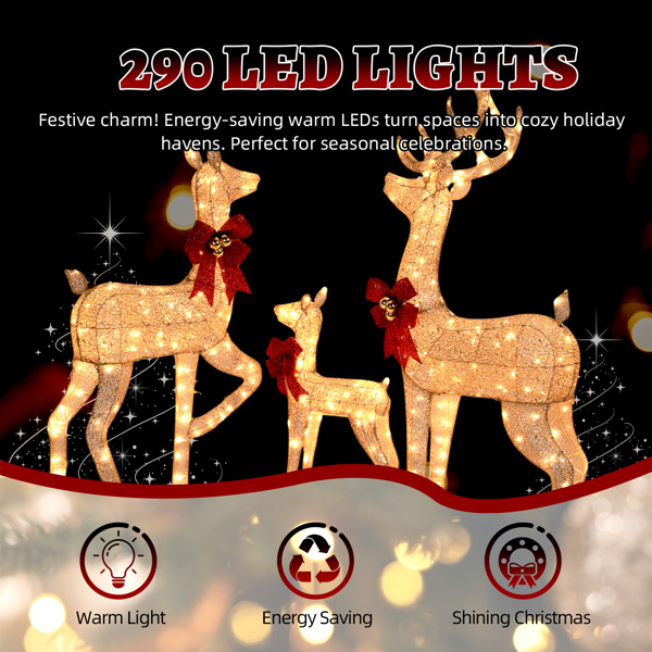 1. Charming Christmas Reindeer Family: This delightful set includes an adorable buck, doe, and fawn, each detailed with a striking red bowknot. Loved by both kids and adults, these reindeer bring warmth and festive joy to your outdoor or indoor Christmas decorations.
