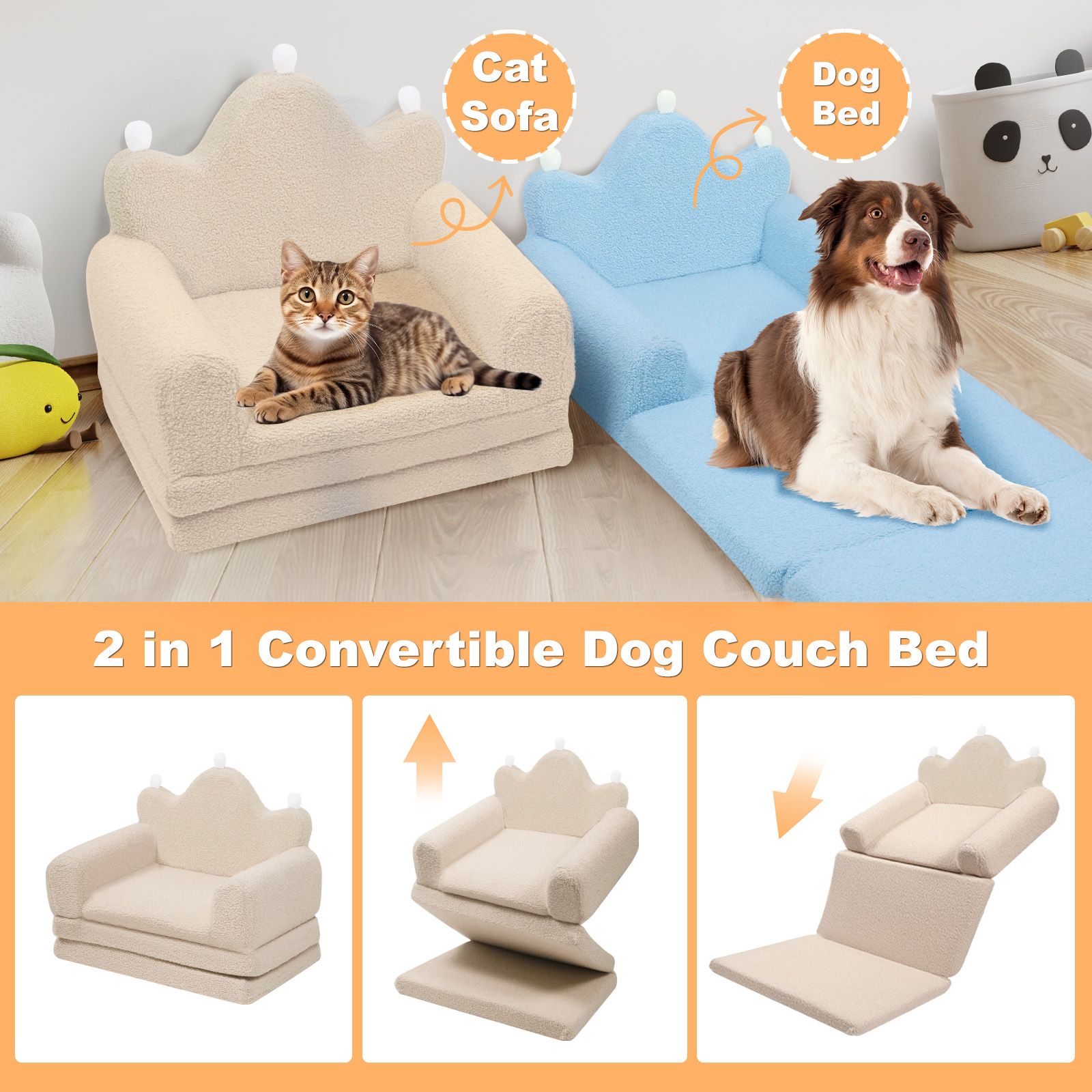Tiara-Shaped Convertible Dog Bed And Sofa - 22.8"×18.8"×15.7" - 2-in-1 Luxurious Pet Bed With Plush Cushion And Machine-Washable Cover