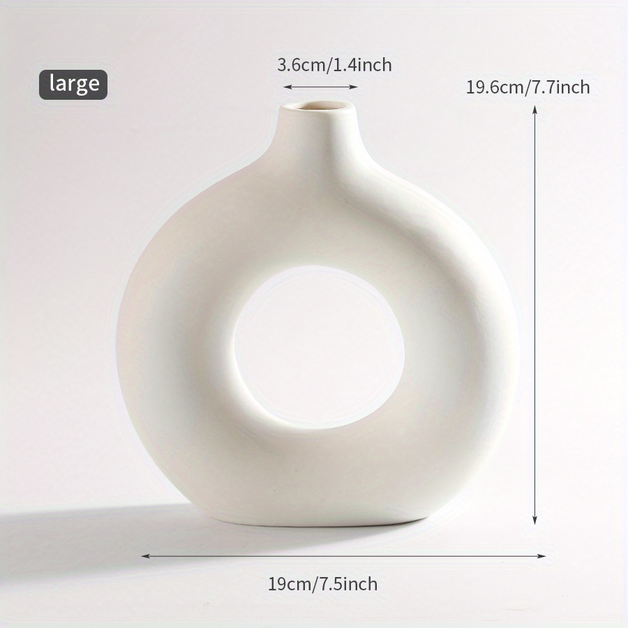 Home > 1pc; White Ceramic Vase White Vases For Decor; Modern Home Decor Vase; Boho Vases For Decor; Circle Vase; Round Vase; Donut Vase; Decorative Vase