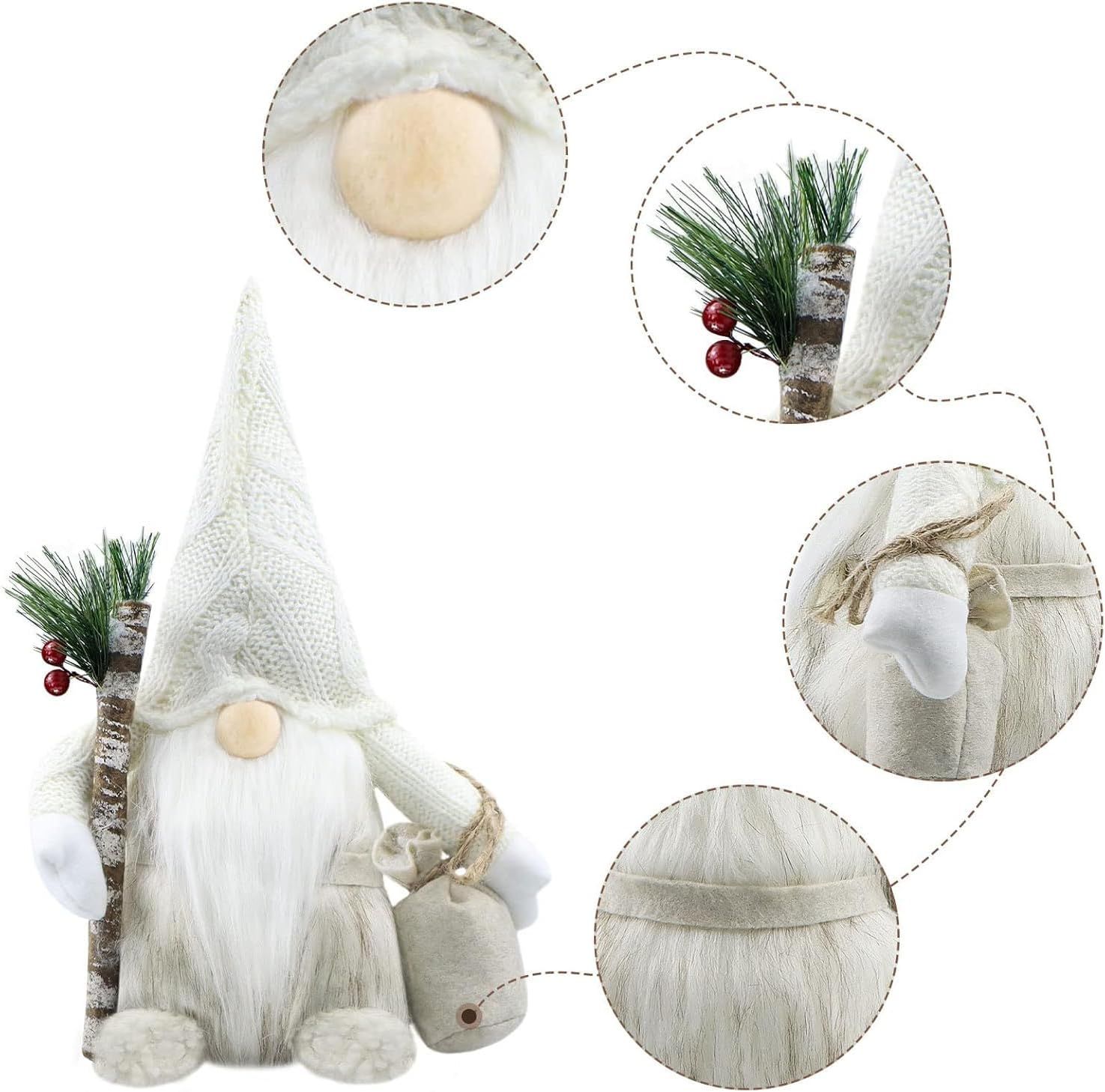 Christmas Gnomes Plush Decorations Handmade Scandinavian Tomte Stuffed Santa with Branch and Bag Xmas Decor for Home Kitchen Farmhouse Tiered Tray -