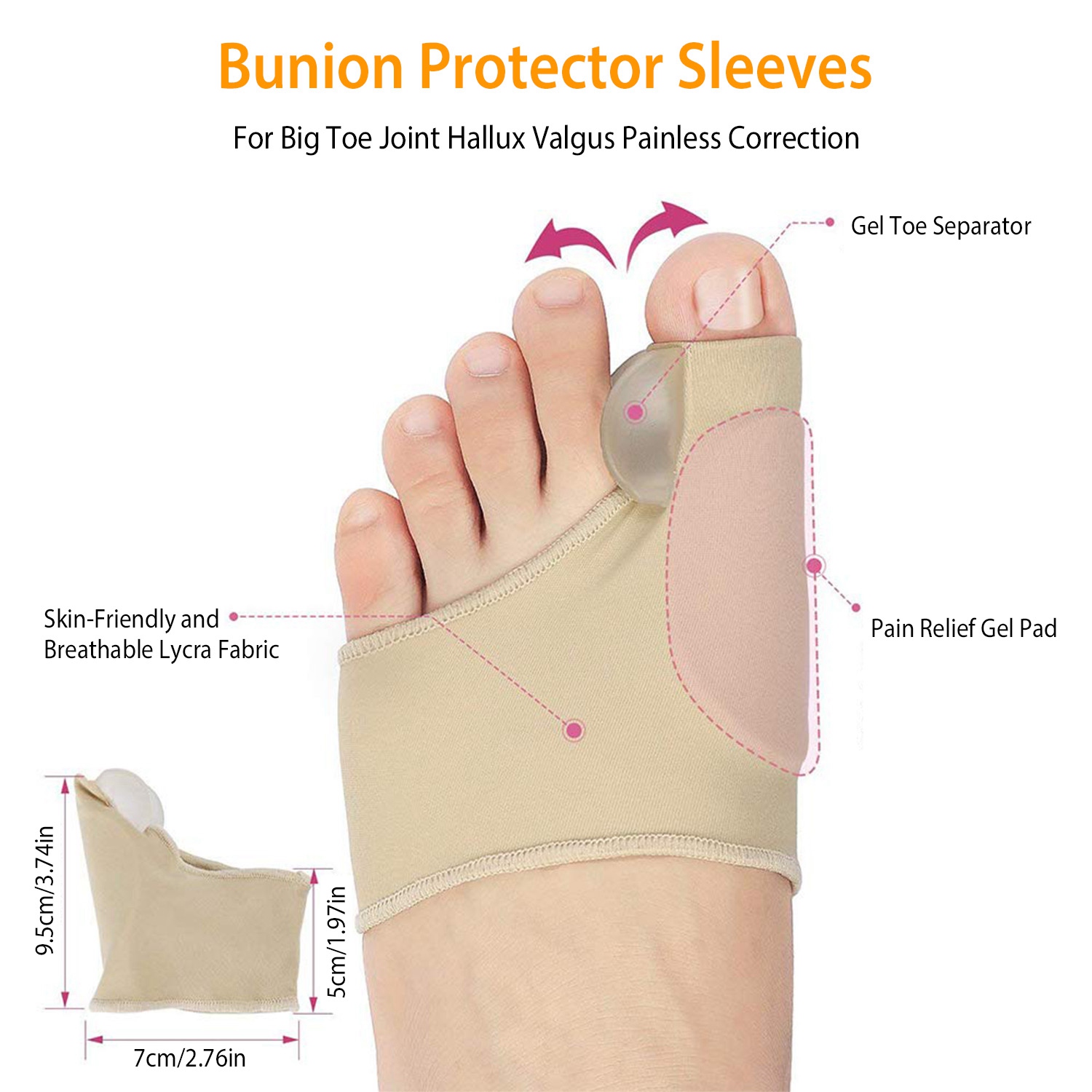 Bunion Protector Sleeves Size/Weight:9.5x7x2.5cm/3.74x2.76x1in;13.5g/0.03lbs