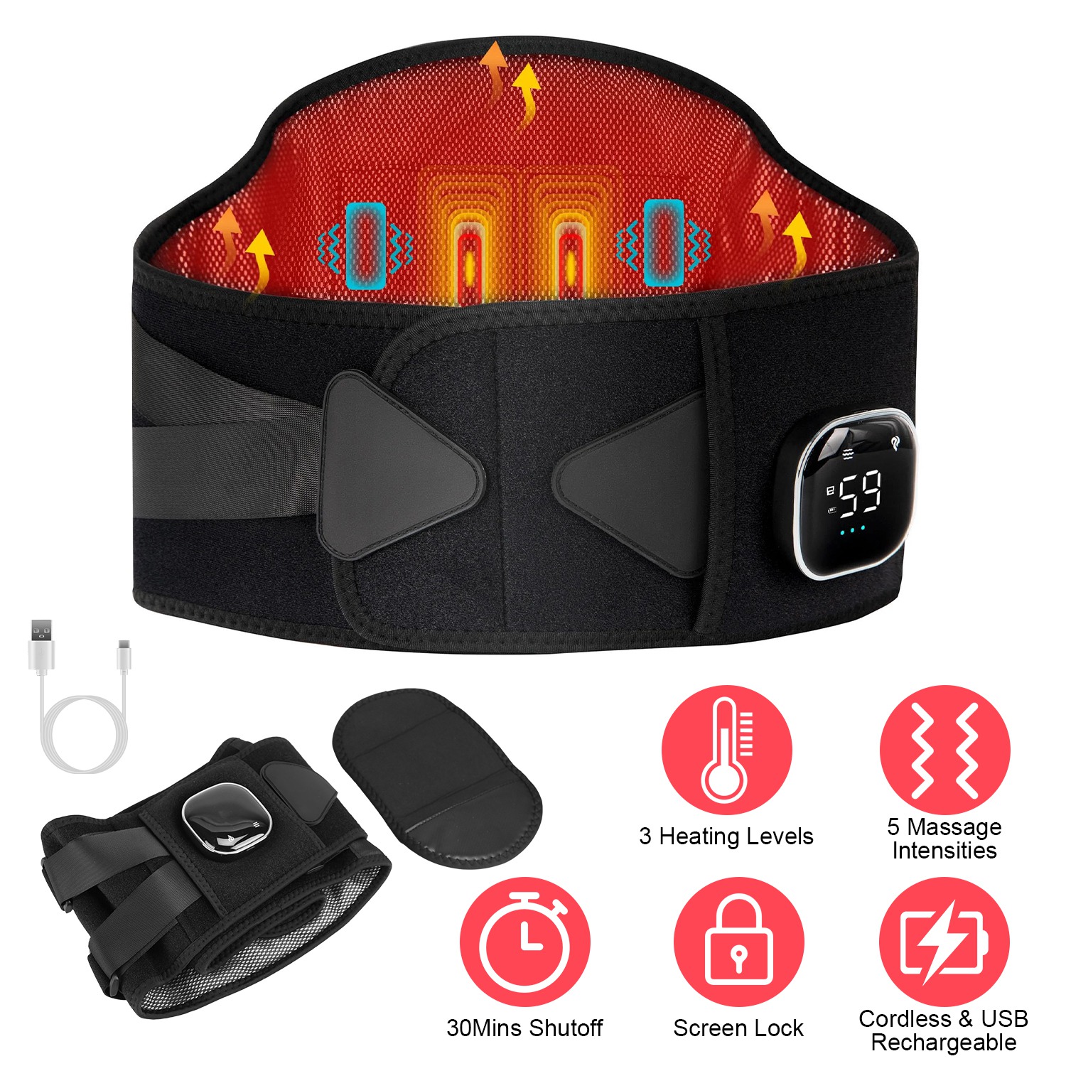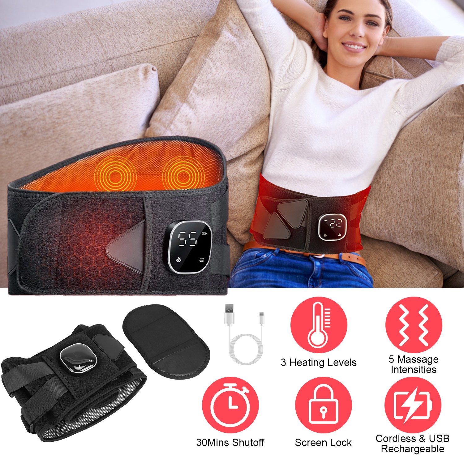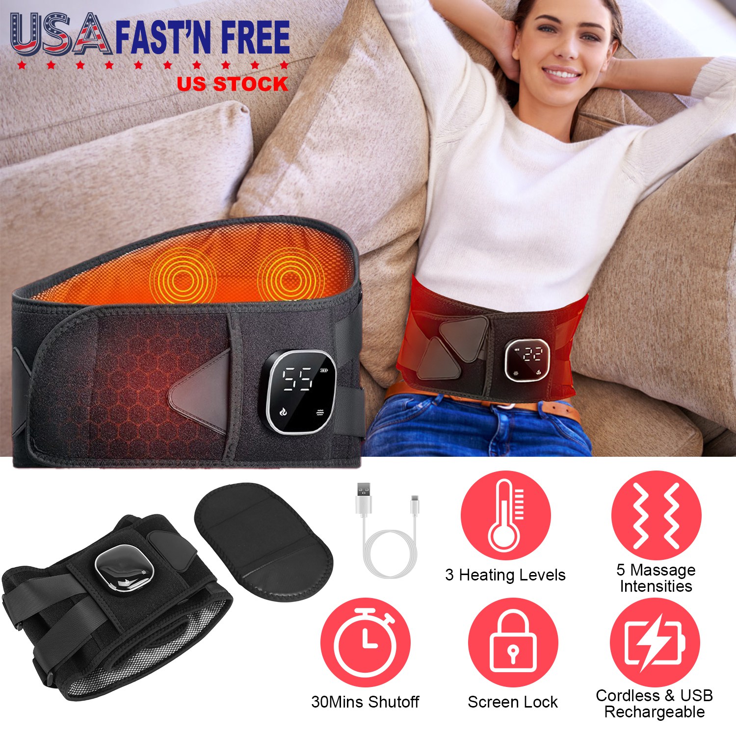 Lower Back Massager Heating Pad Cordless Heating Pad for 3 Heat Levels 5 Massage Intensity Levels for Back Belly Cramps Pain Relief