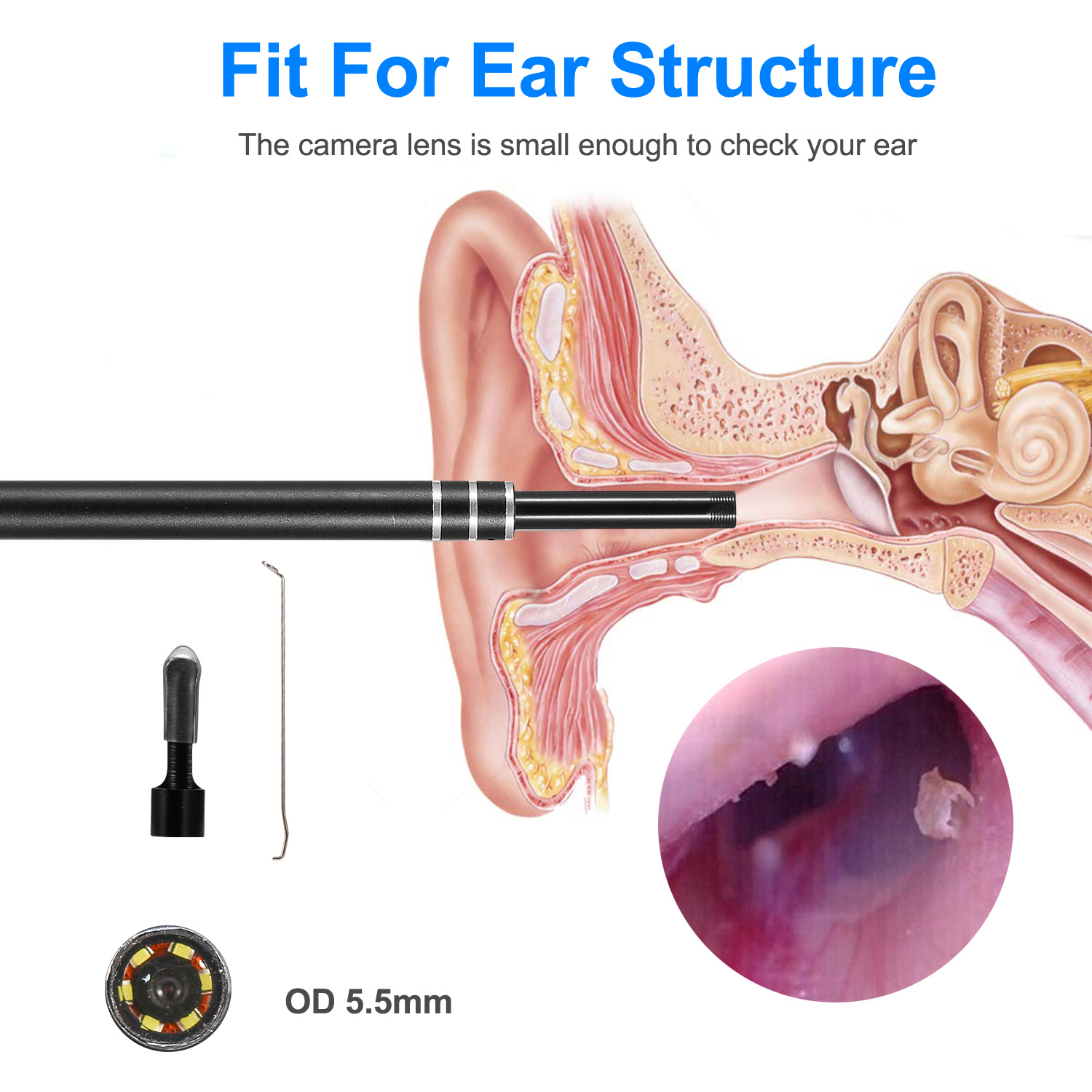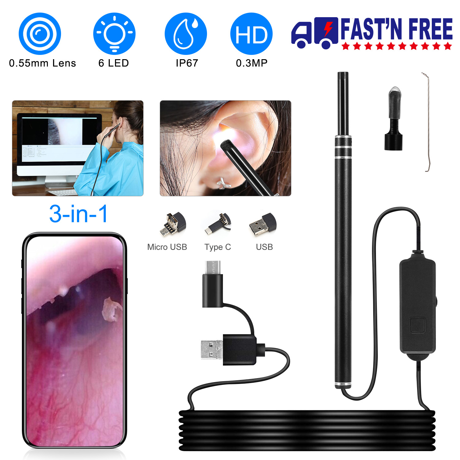 Home > Ear Endoscope Otoscope Visual Earpick Ear Cleaning Camera Ear Wax Removal Tool IP67 Waterproof 3 in 1 Borescope w/ 6 Adjustable LED for Android