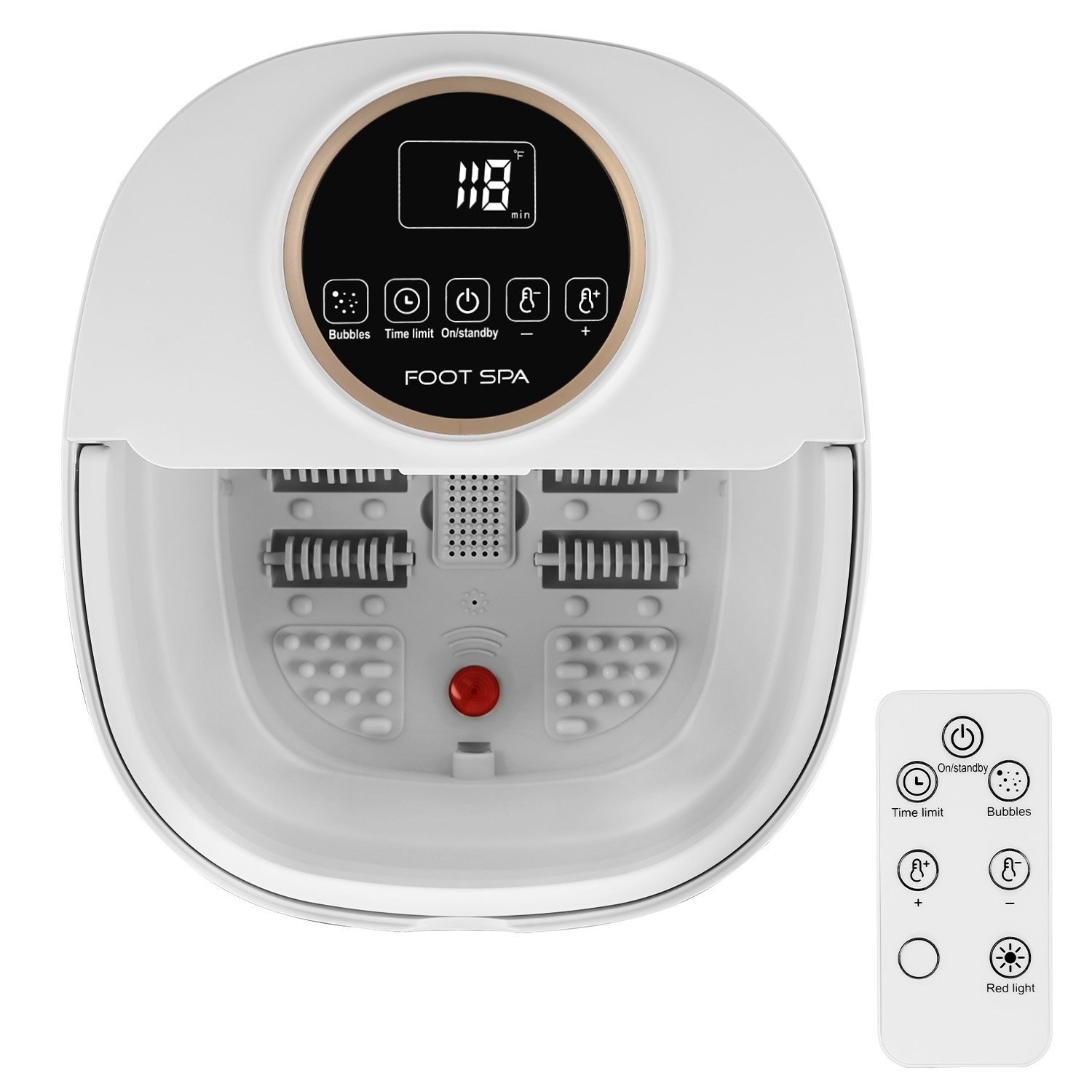Home > Collapsible Foot Spa Massager Electric Foldable Foot Soaker Tub with Remote Control Handle Surfing Bubbles 24 Heating Levels 6 Timer 6 Massage Rollers