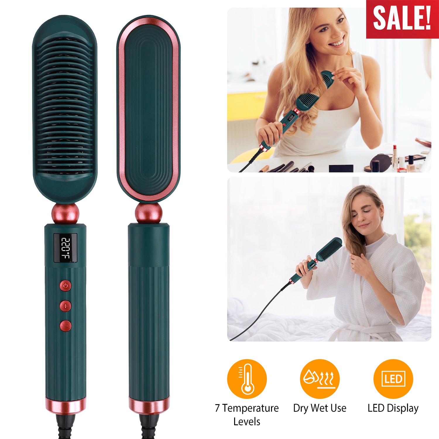 Home > Electric Hair Straightener Brush Anti-scald Straightening Curler Hot Comb with 7 Temperature Levels LED Display