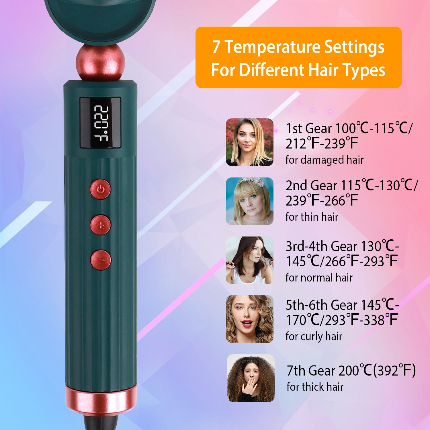 Electric Hair Straightener Brush Anti-scald Straightening Curler Hot Comb with 7 Temperature Levels LED Display