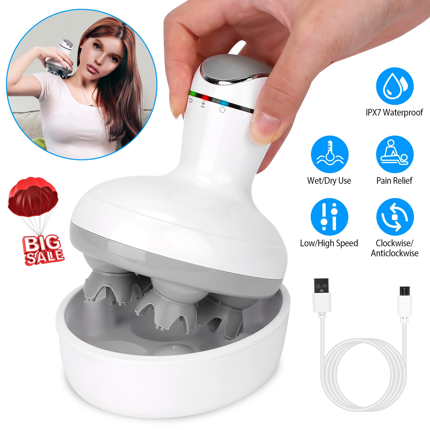 Electric Scalp Massager Handheld Head Kneading Scratcher IPX7 Waterproof 72 Massage Nodes Hair Growth Neck Shoulder Waist Body Massager
