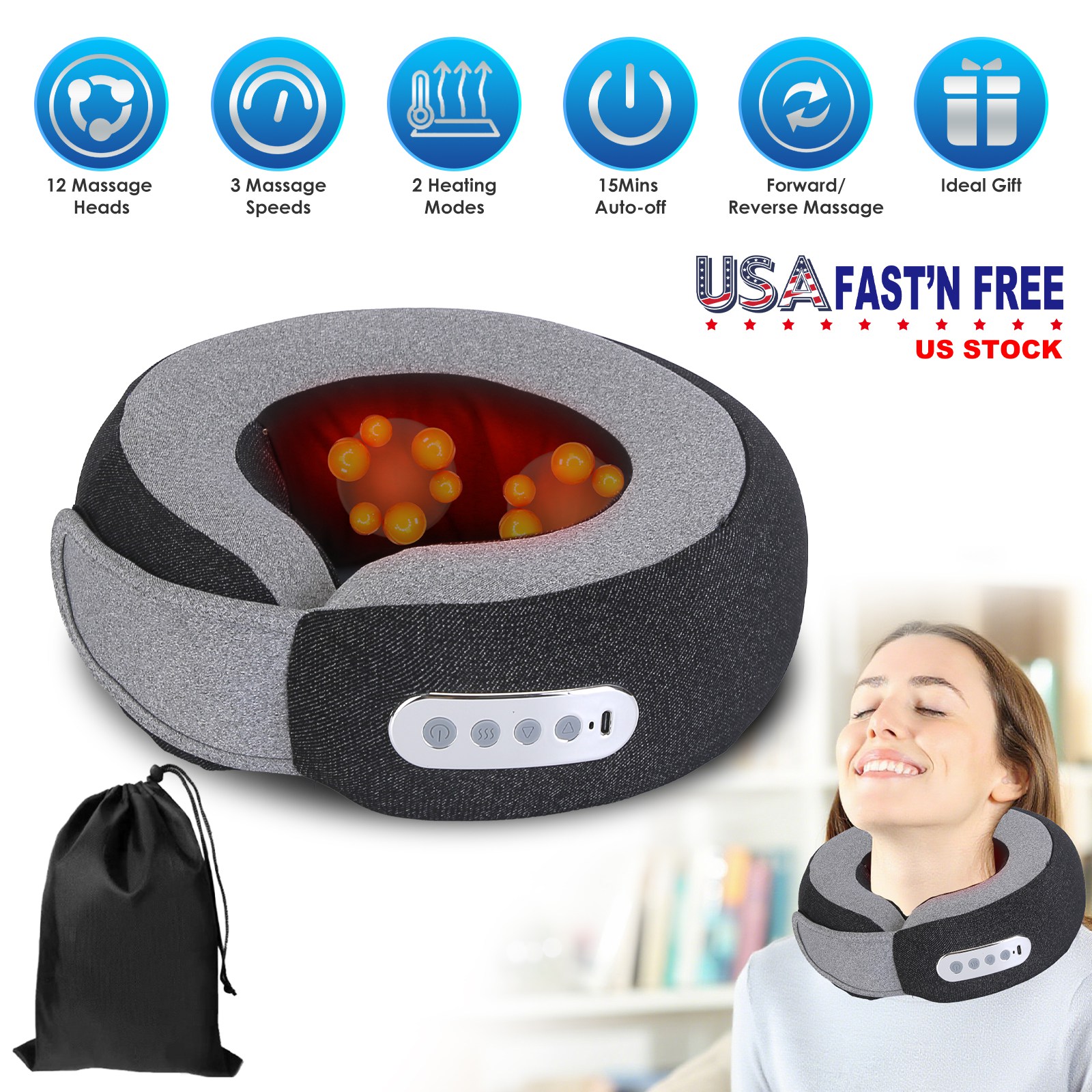 Home > 2 In 1 Neck Massager Pillow with Heat Electric Memory Foam Travel Pillow Shiatsu Neck Massager with 3 Speeds Timer for Home Office Travel
