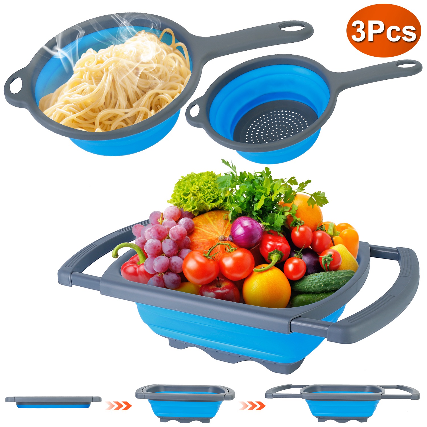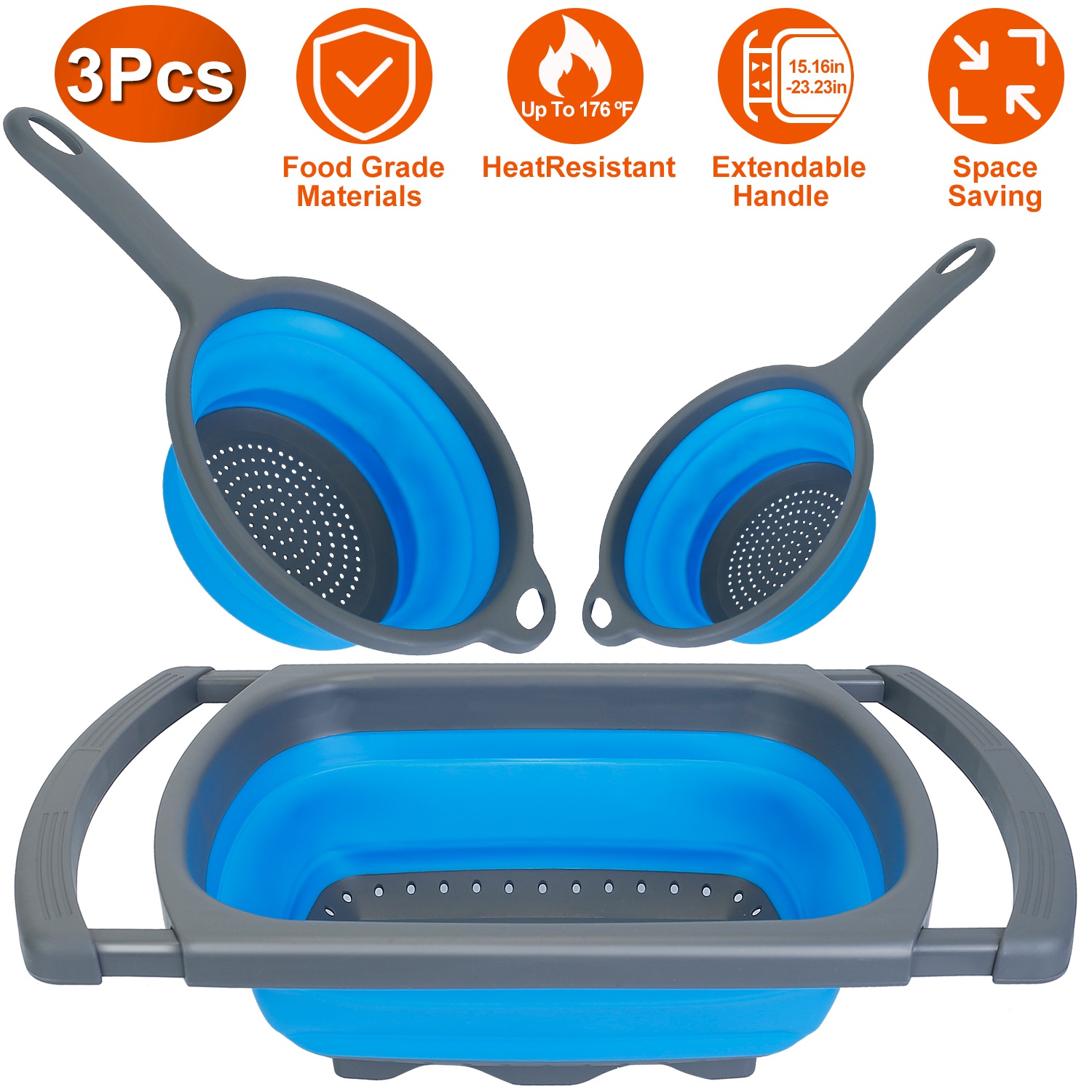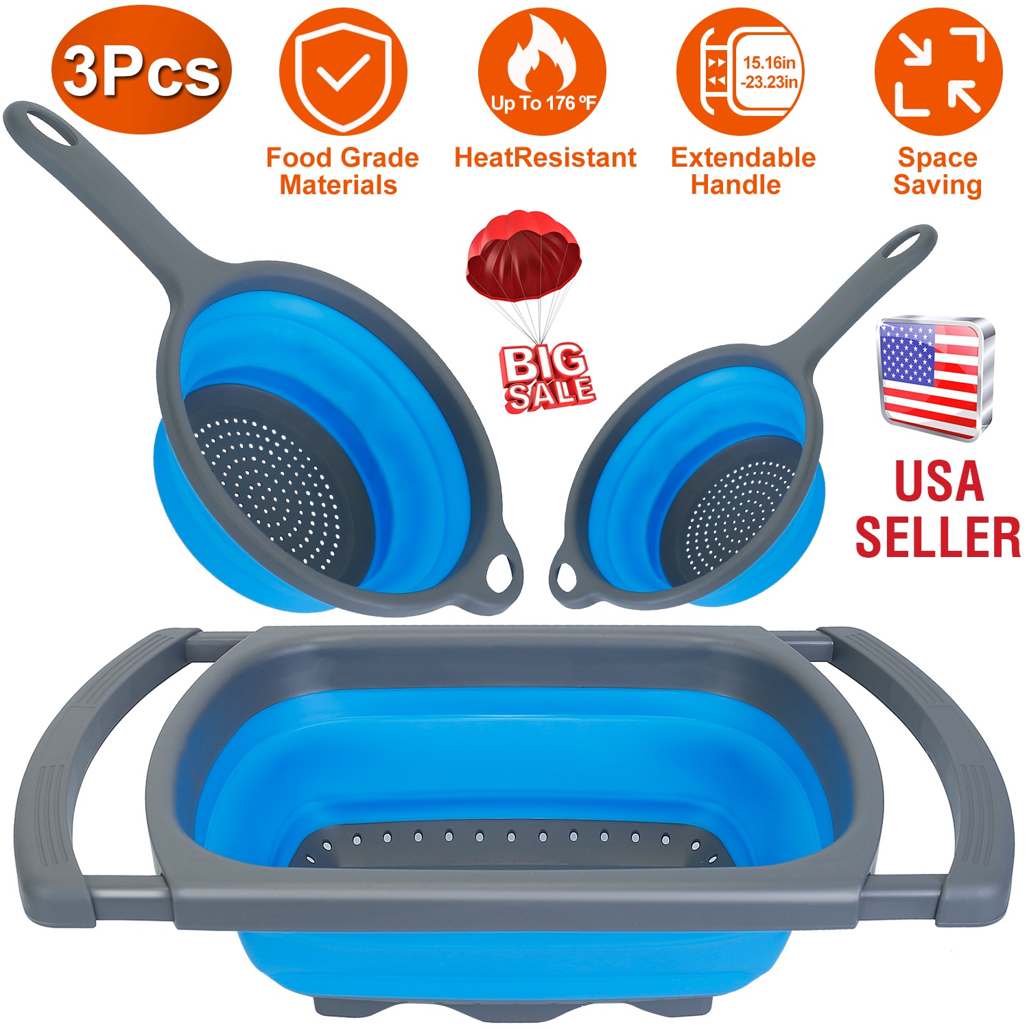 Home > 3Pcs Collapsible Colander Set Heat Resistant Vegetable Fruit Pasta Strainer Over The Sink Folding Drainer Extendable Thickened Handles For Fruits Spag