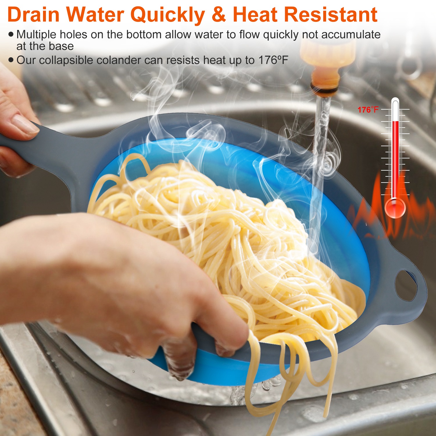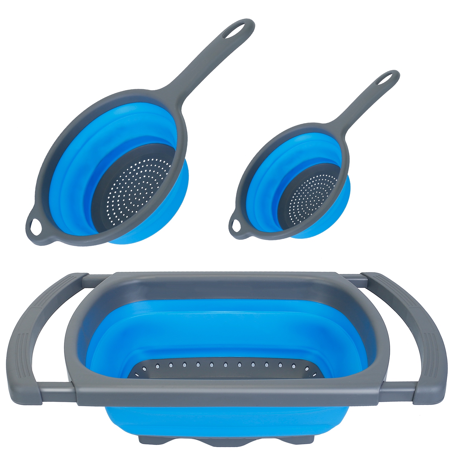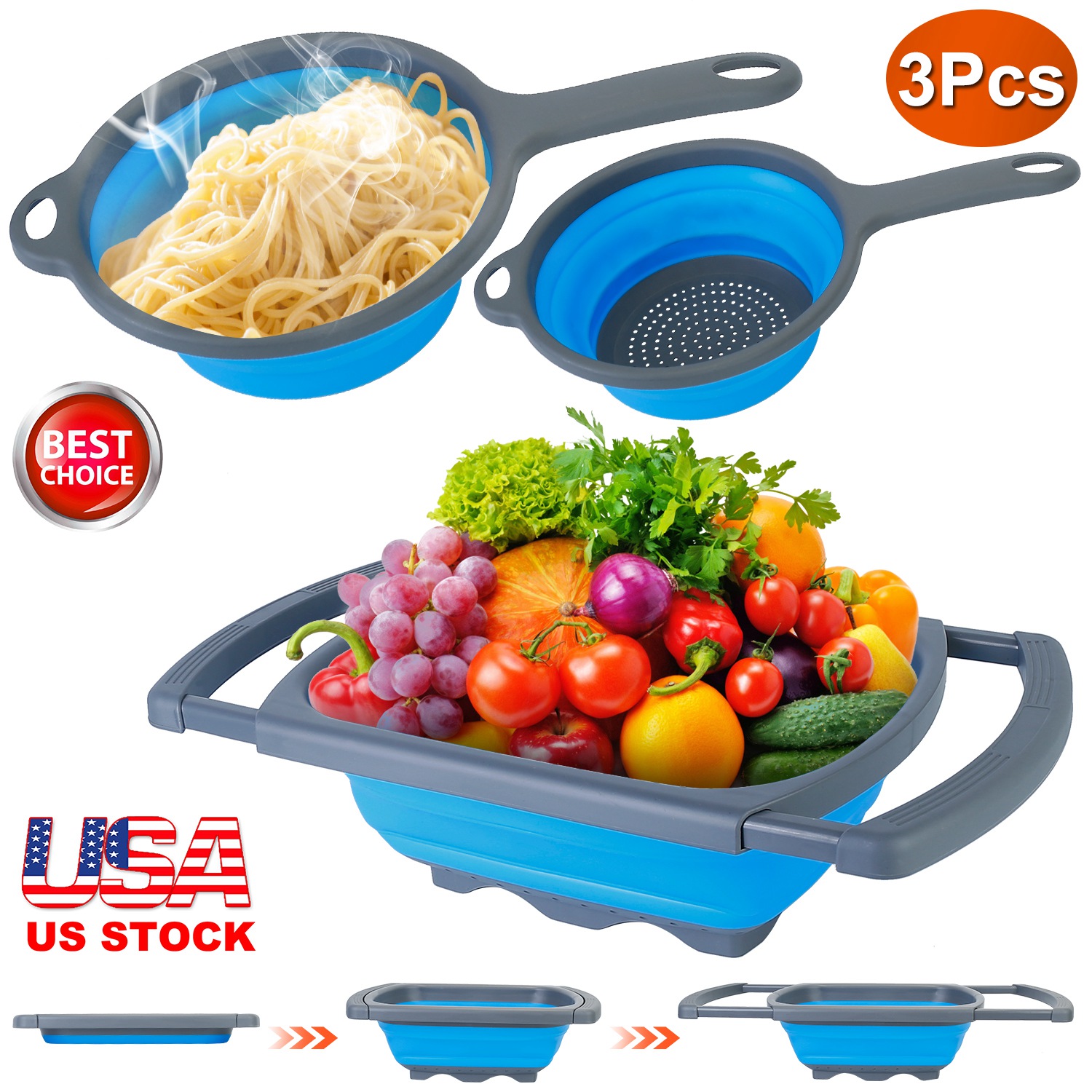 Home > 3Pcs Collapsible Colander Set Heat Resistant Vegetable Fruit Pasta Strainer Over The Sink Folding Drainer Extendable Thickened Handles For Fruits Spag