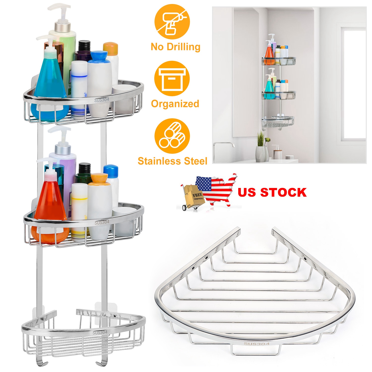 Home > 3 Tier Corner Shower Caddy Shelf Stainless Steel Wall Mount Shampoo Organizer Basket Rustproof Adhesive Toiletries Rack For Bathroom Kitchen Dorm