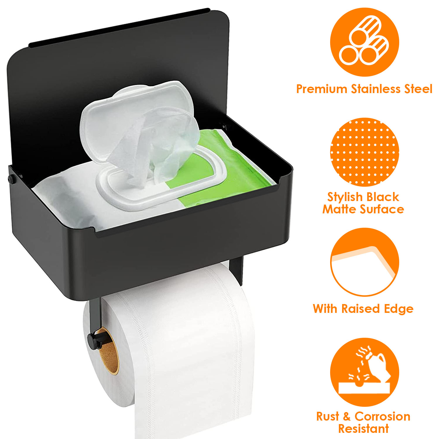 Home > Toilet Paper Holder with Flushable Wipes Dispenser Wall Mountôainless Steel Matte Black Toilet Paper Holder with Shelf¯r Bathroom
