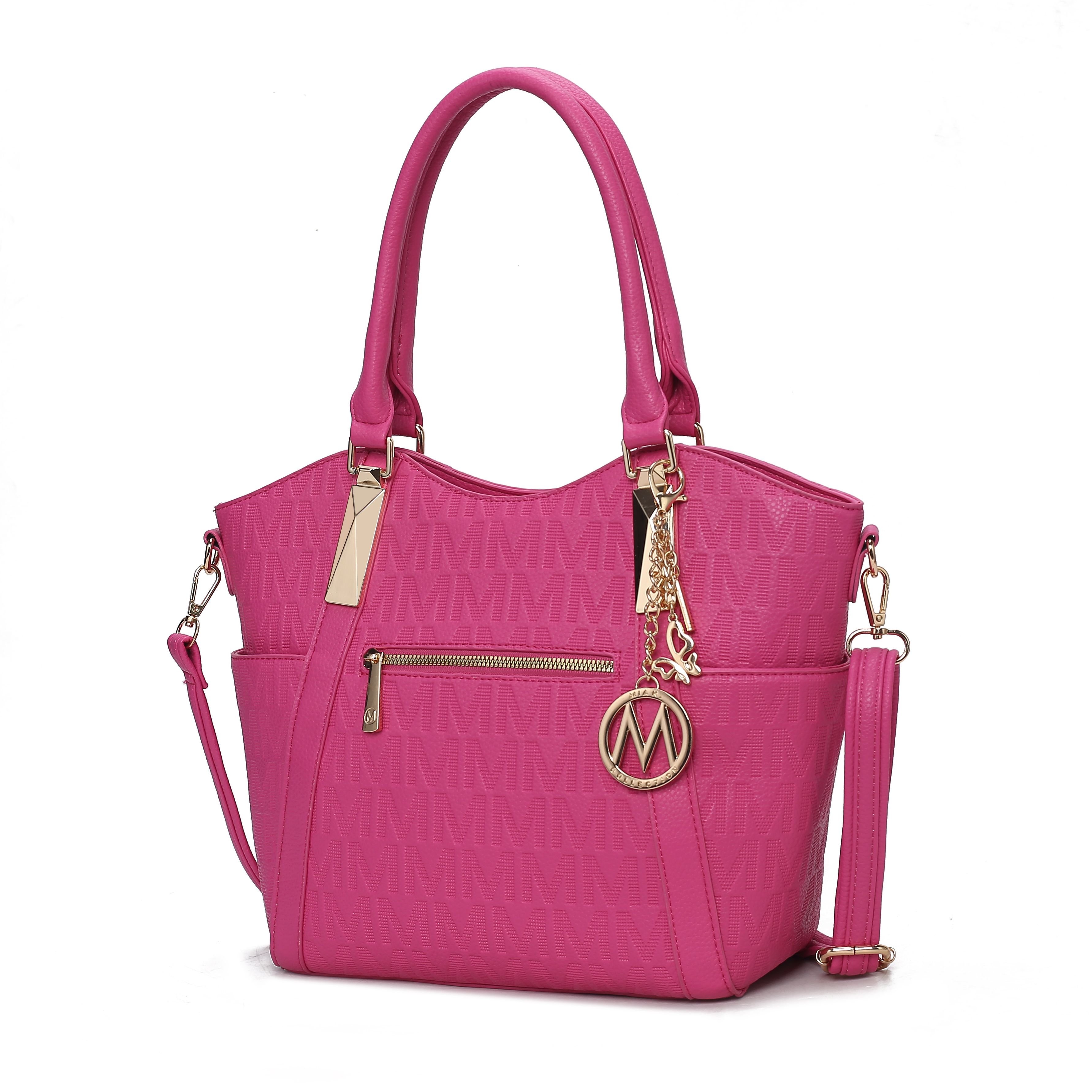 The bag is accented with gold-tone hardware, adding a touch of opulence to its overall design. The metallic finish not only complements the embossed pattern but also serves as a chic contrast against the bag’s main material. The gold-tone hardware includes sturdy zippers, durable metal feet to protect the base, detachable keychain with our round M emblem, and stylish embellishments on the handles, creating a cohesive and refined look.