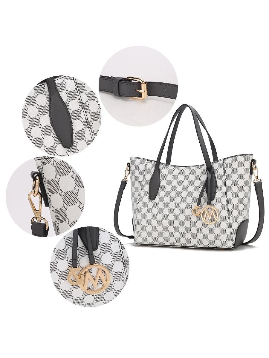 Introducing our elegant Gianna Tote Handbag and matching wallet, the perfect accessory duo for those who appreciate classic style with a modern twist.This exquisite tote handbag exudes sophistication with a circular print on it. Crafted from high-quality faux leather, the bag combines durability with a luxurious feel. The print features a harmonious blend with the smoothy trims, which tastefully complemented by elegant gold-tone hardware, adding a touch of glamour to your ensemble.