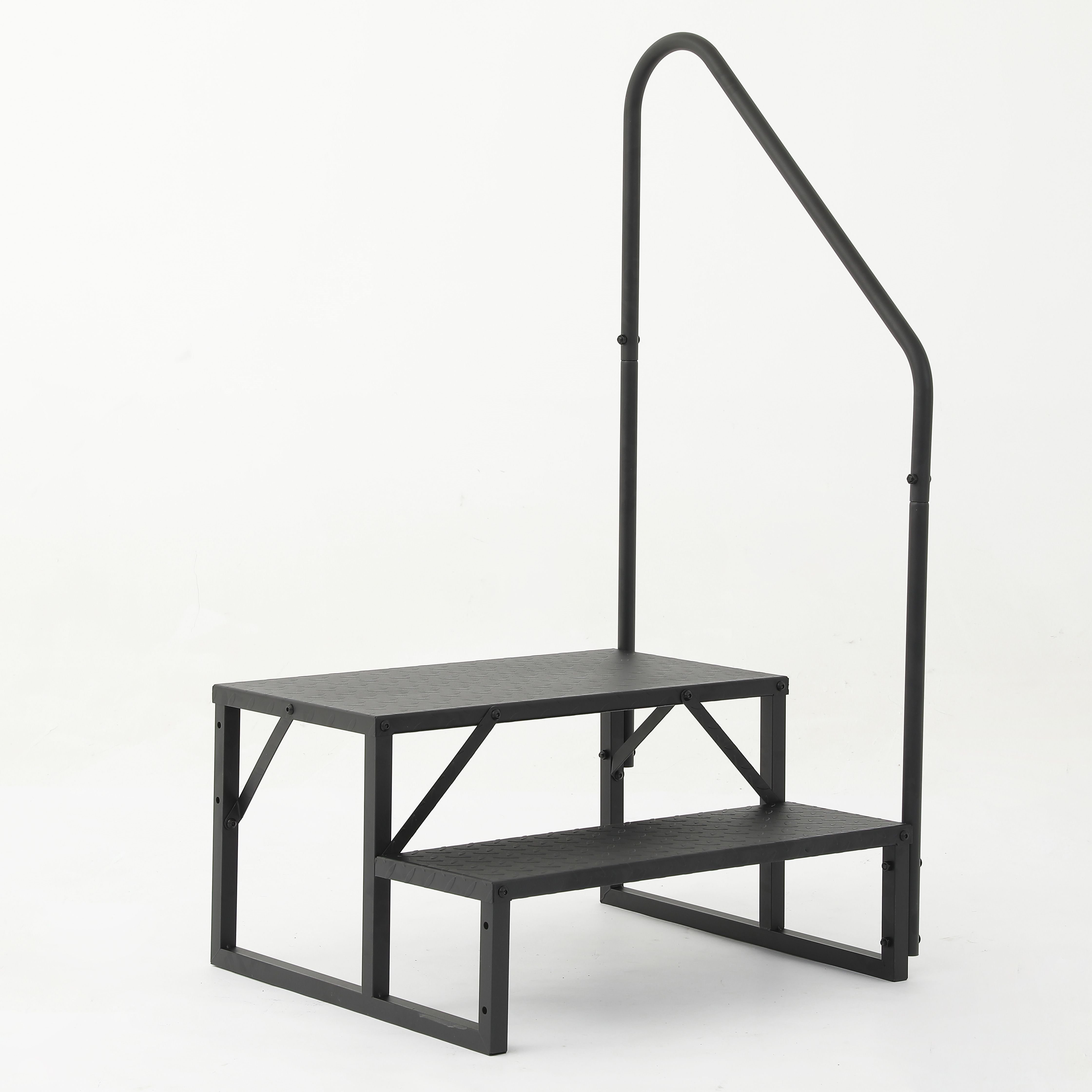 1.Porch Steps with Handrail: To make the RV step stool ladder safer, we offer a single-side handrail that provides extra support as you ascend and descend the steps. Our ladder bookshelves have mounting holes on both sides of the ladder, so you can choose to mount the handrail on either side of the pool stairs.