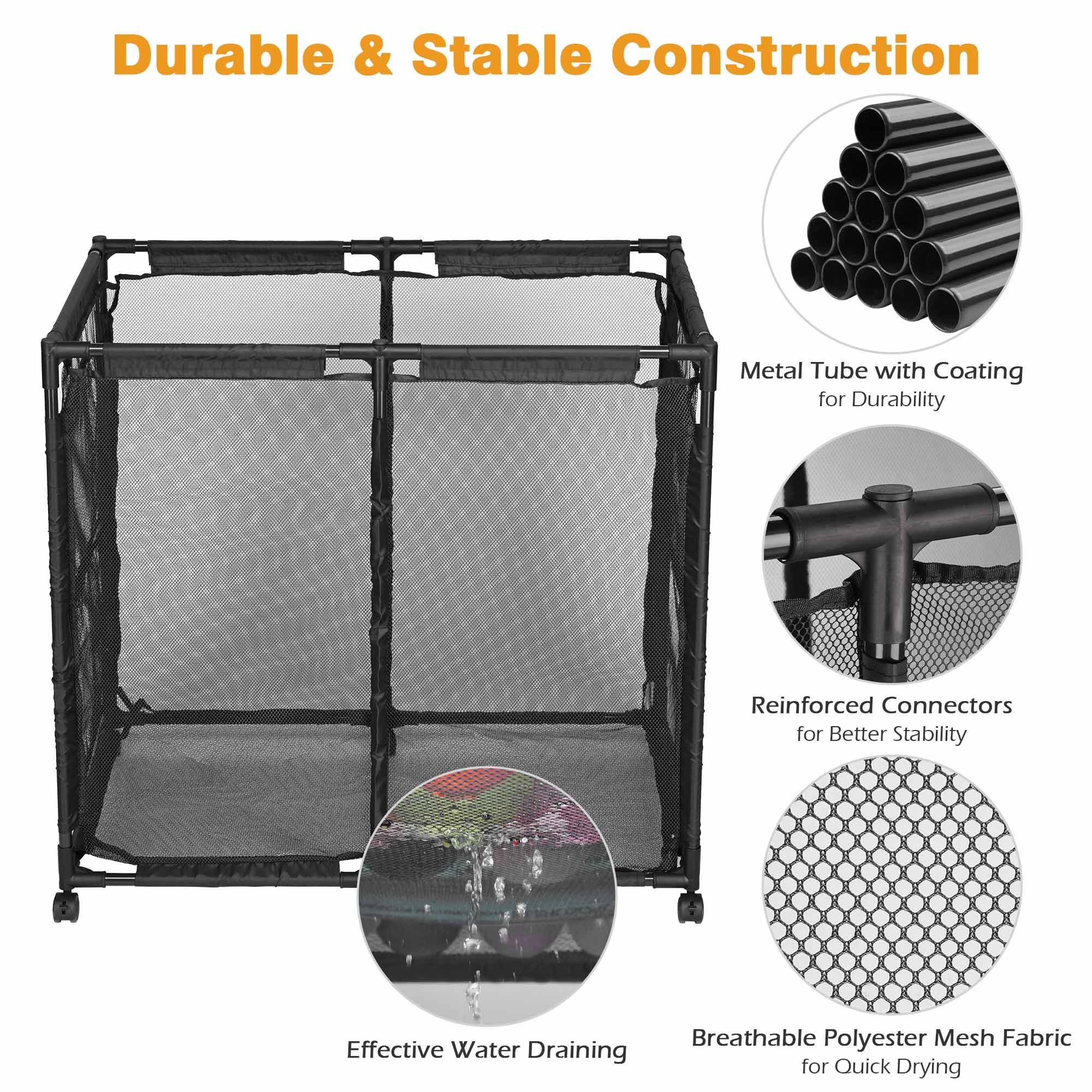 - Compact Size - This 37"x24"x35" Mesh Pool Storage Bin features a 28Lbs max weight capacity which supports different swimming accessories such as pool noodles and floats, along with side pockets for holding small accessories such as goggles and swimming caps, perfect for public pools, water parks, natatoriums, etc.